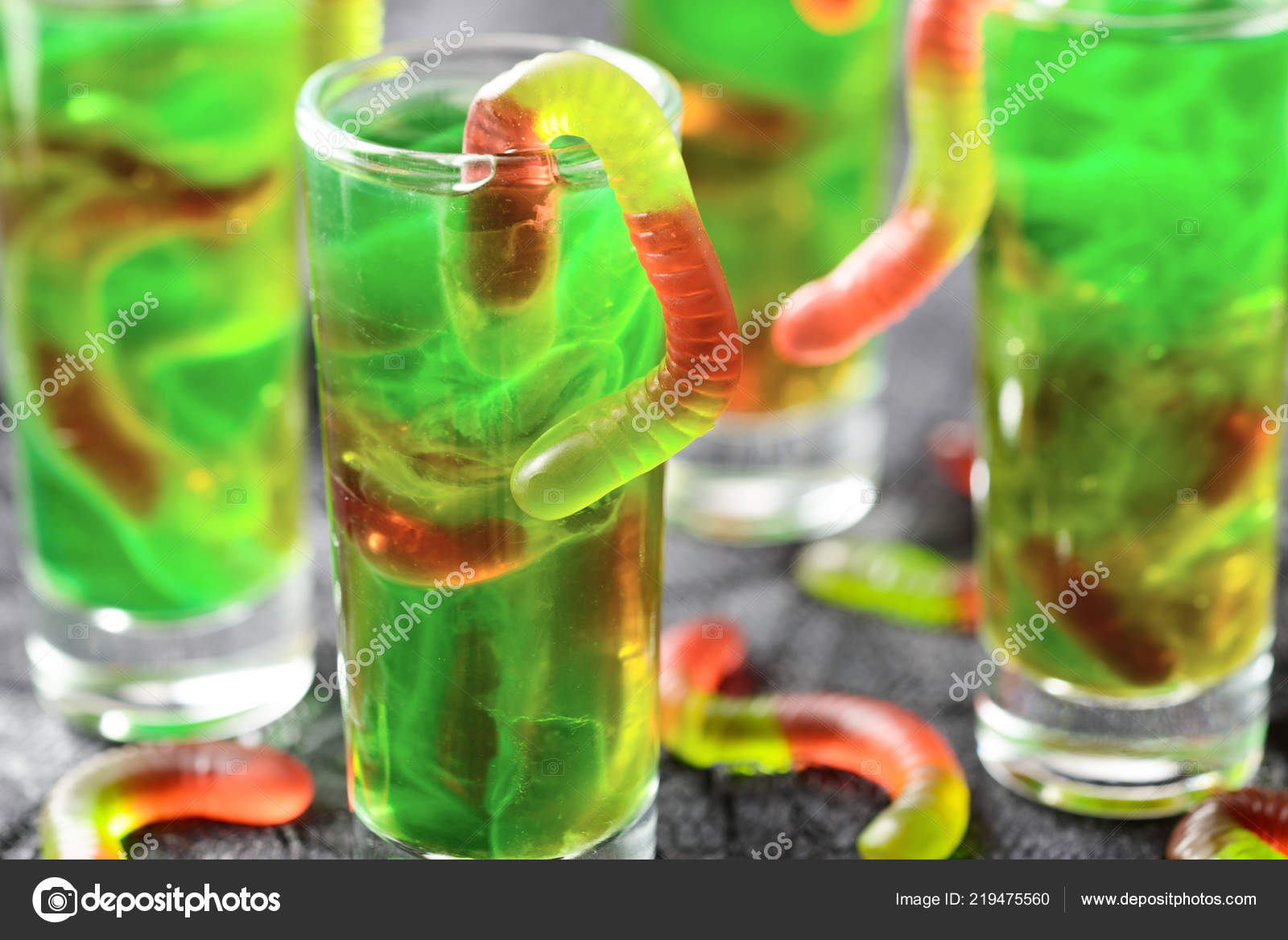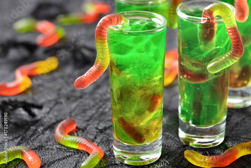Green Halloween Jello Shots With Gummy Worms Buy This Stock